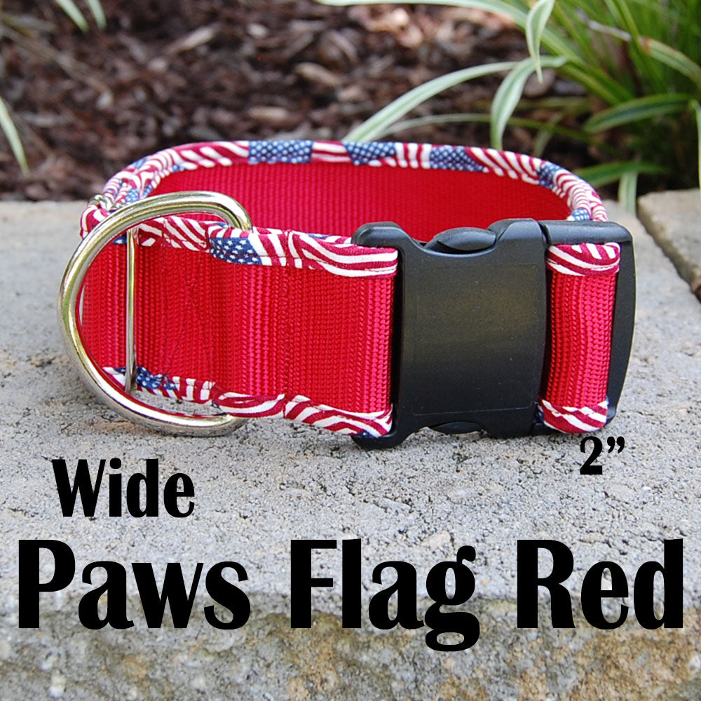 Wide Dog Collar - 2” Flag Red